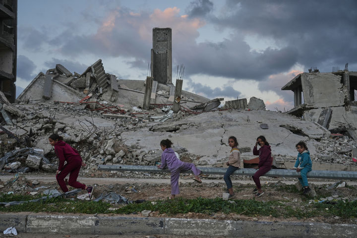 전쟁 폐허 속에서 노는 팔레스타인 소녀들