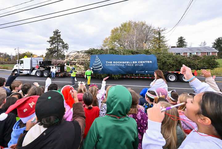트럭에 실리는 올해의 록펠러센터 크리스마스트리