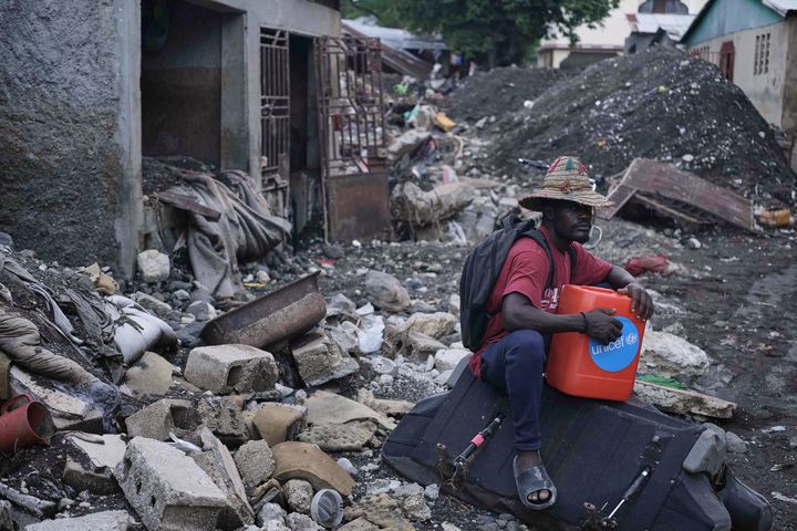 허리케인 멀리사 잔해에 앉아 있는 주민