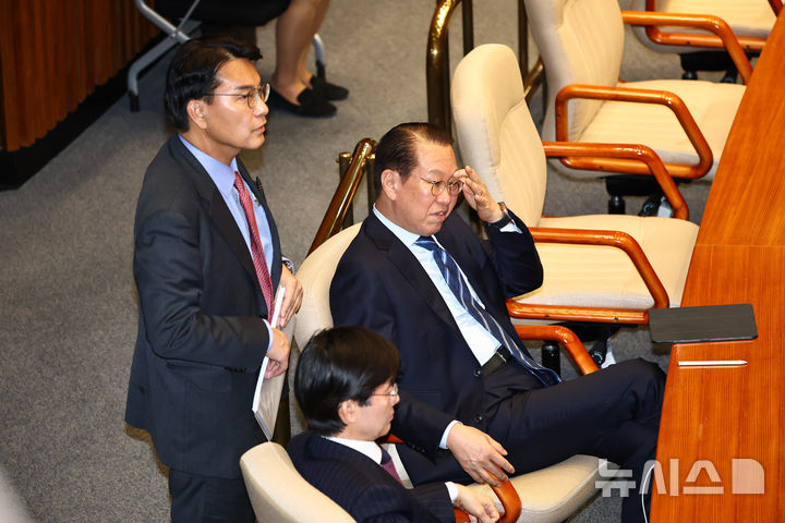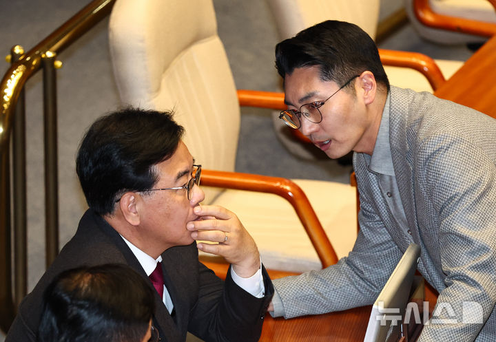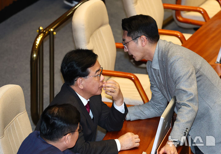 박준태 당대표 비서실장관 대화하는 송언석 원내대표
