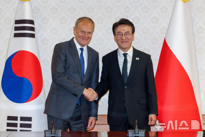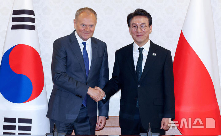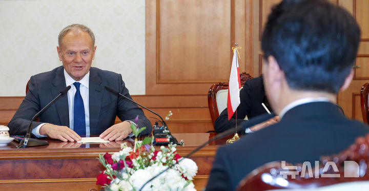 도날드 투스크 폴란드 총리와 면담하는 김민석 총리
