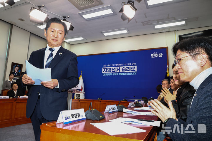 박수받으며 이동하는 정청래 대표