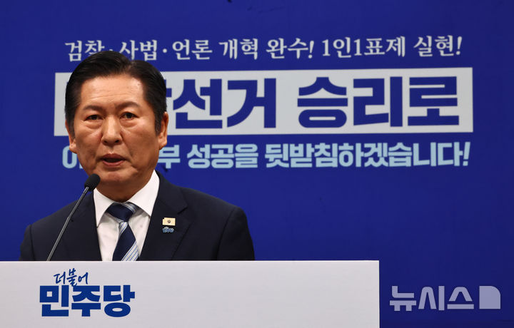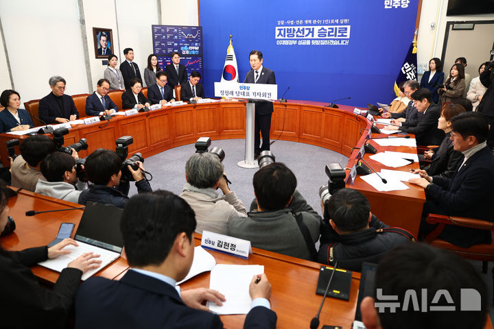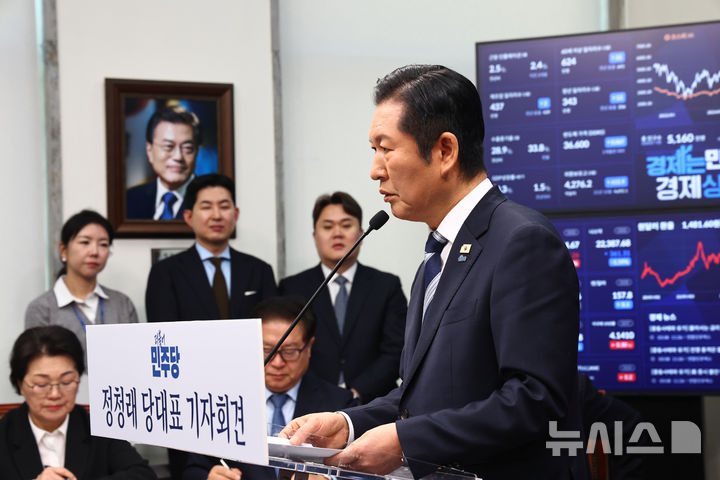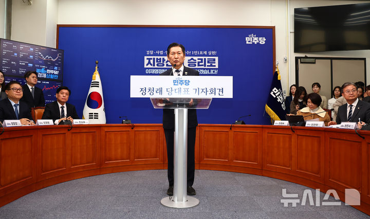 성과 발표 기자회견하는 정청래 대표