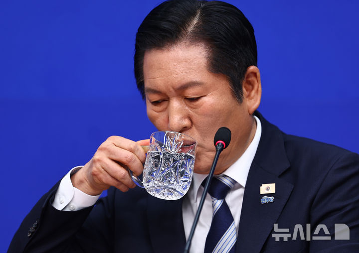 물 마시는 정청래 대표