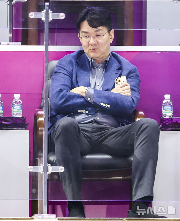 흥국생명-한국도로공사 경기 지켜보는 조원태 배구연맹 총재