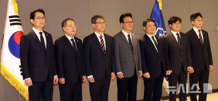 차관급 임명장 수여식 마친 뒤 기념촬영 하는 김민석 총리
