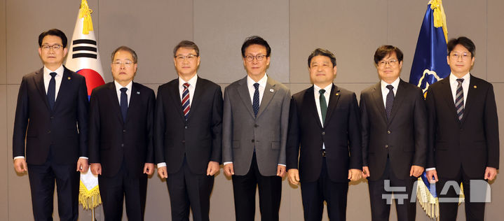 김민석 총리와 기념촬영 하는 김종구 농식품부 차관