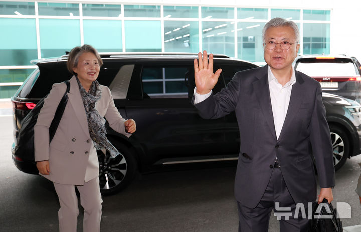 김해공항 도착한 문재인 전 대통령