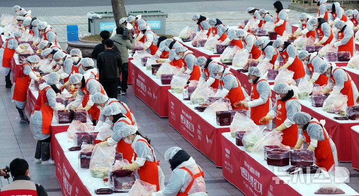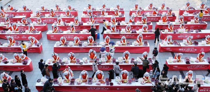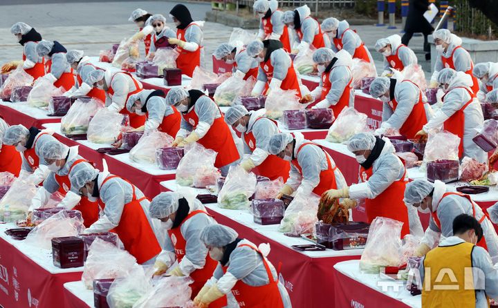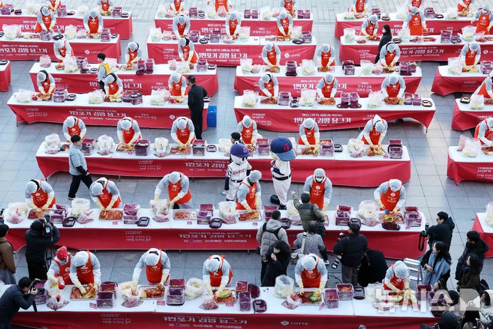롯데, 강추위 속 1만포기 김장 나눔