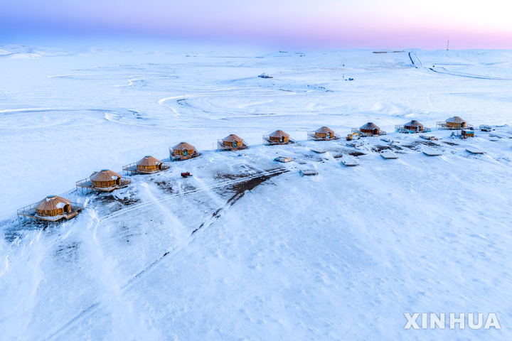 눈 덮인 천바얼후기 설원의 숙소 '유르트'