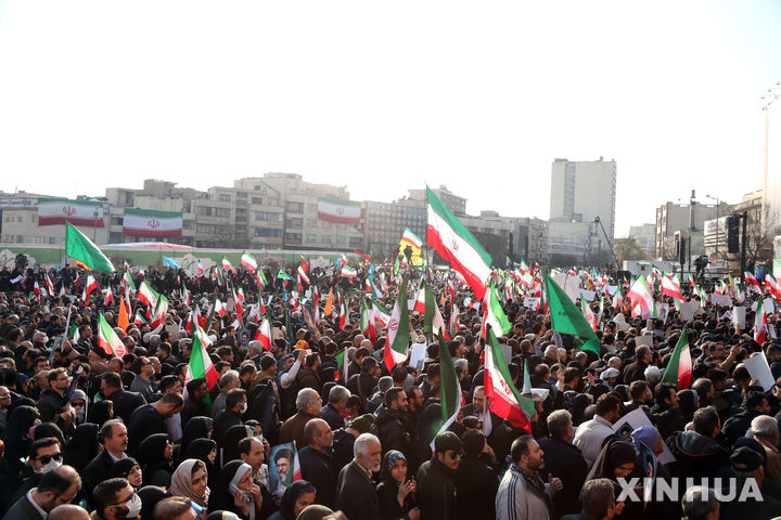 테헤란에 운집한 친정부 집회 참가자들