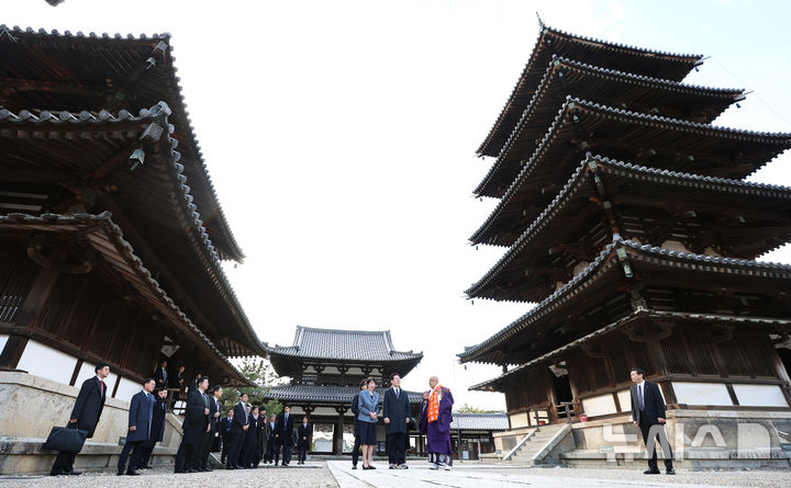 정치 한일 정상, 호류지에서 친교 행사