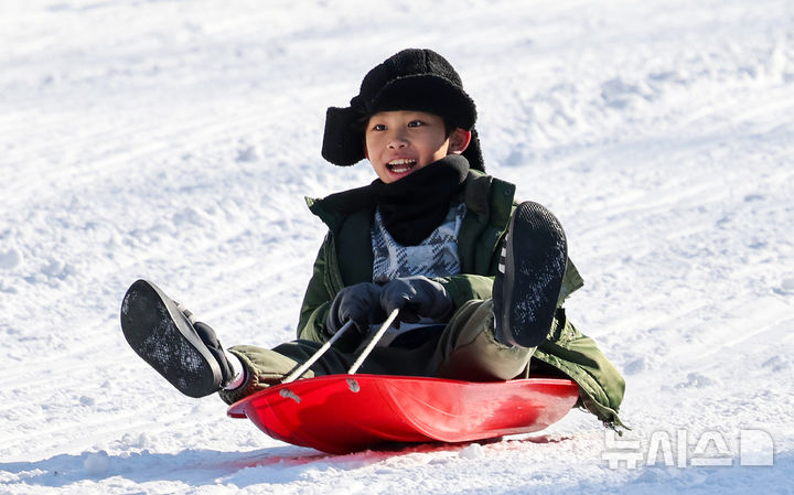 '겨울에는 눈썰매가 재미있어요'