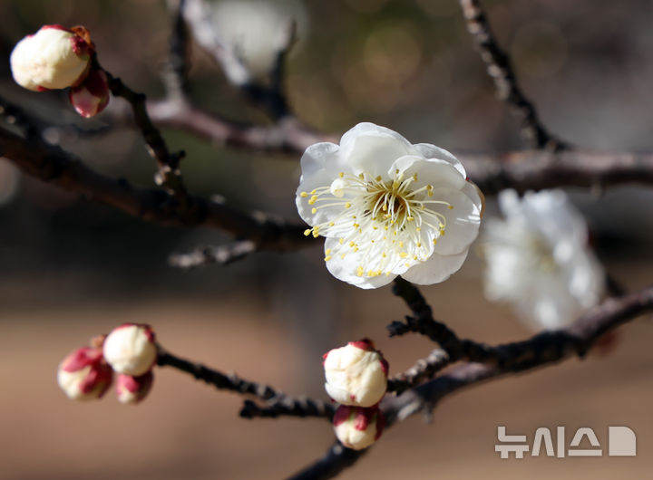 '때이른 봄이 왔나' 꽃망울 터트린 매화