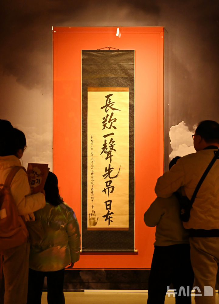 안중근 유묵 '장탄일성 선조일본' 관람하는 시민들