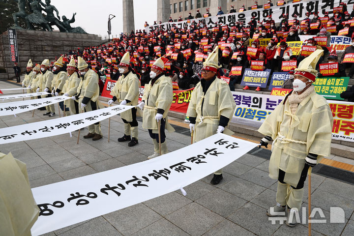 청와대 비정규직 노동자, 고용 보장 촉구하며 청와대로 삼보일배