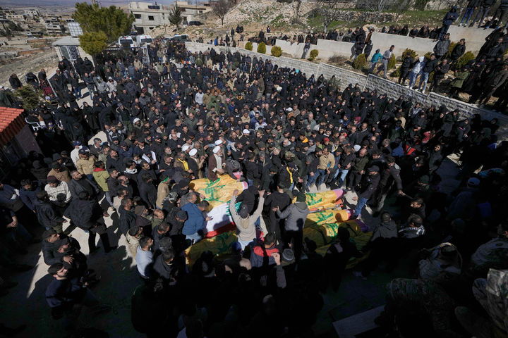 이스라엘 공습 희생자 장례에 모인 레바논 사람들