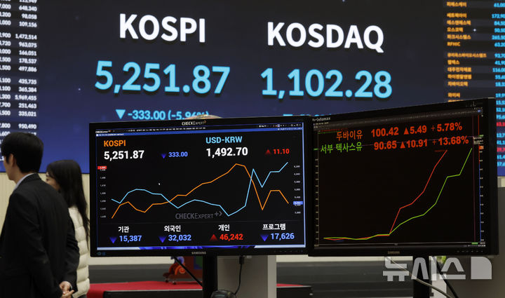유가 폭등에 급락 마감한 코스피