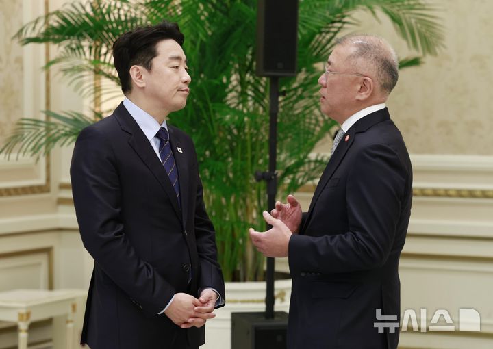 대화하는 강훈식 비서실장-정의선 현대차 회장