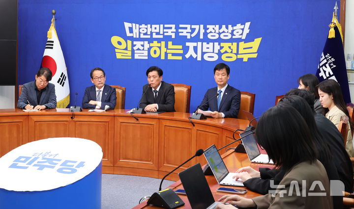 김관영 전북지사 제명 의결 경위 설명하는 조승래 민주당 사무총장