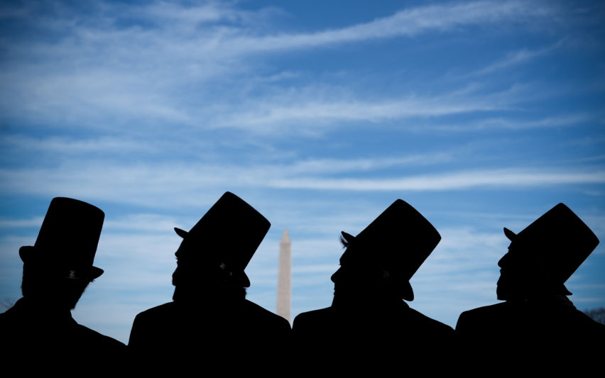 링컨 복장으로 페니 장례식 참가한 미 남성들