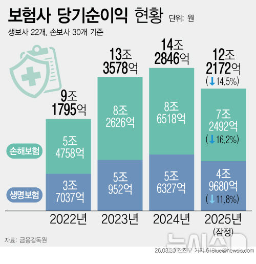 지난해 보험사 순이익 12조2172억원…전년비 14.5% ↓