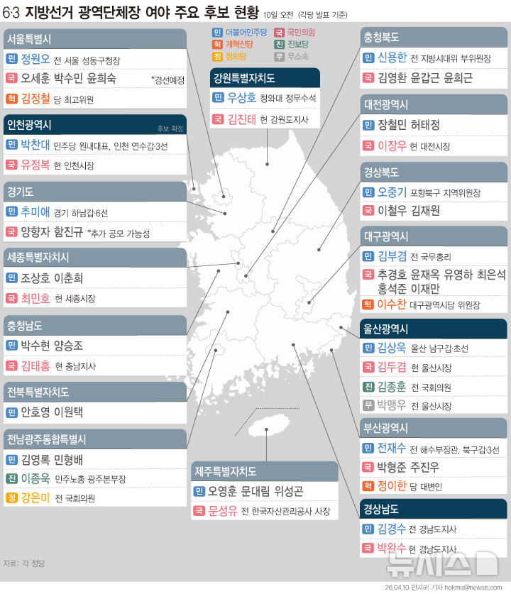[서울=뉴시스] 더불어민주당이 정원오 전 성동구청장을 서울시장 후보로 확정했다. 부산시장 후보로는 전재수 의원이 최종 확정됐다. 국민의힘 서울시장 후보 자리는 오는 16~17일 본경선을 거쳐 18일에 확정된다. 부산시장 후보는 9~10일 본경선을 거친 뒤 11일 확정될 예정이다. (그래픽=안지혜 기자) [email protected]