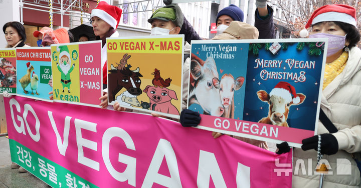 '인간과 동물, 지구가 행복한 비건 크리스마스 되세요'