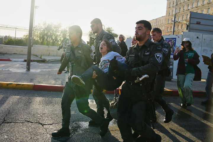 사형 반대 시위대 연행하는 이스라엘 경찰
