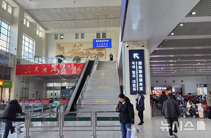 단둥역의 국제열차 대합실
