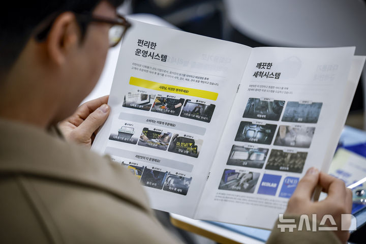 다회용기 리플릿 살펴보는 참관객
