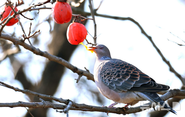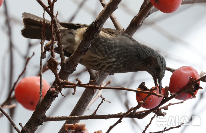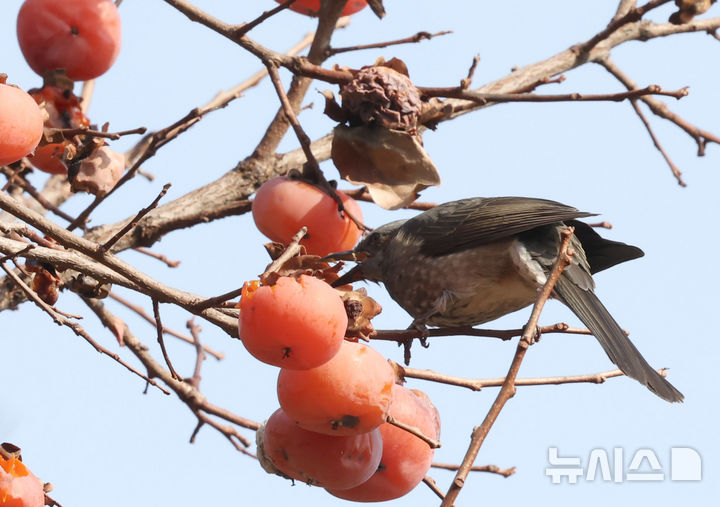 까치밥 먹는 직박구리