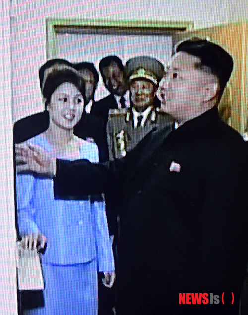 【서울=뉴시스】김정은 북한 노동당 제1비서의 부인 리설주가 9일 김일성종합대학 교육자 주택 준공식에 참석했다고 조선중앙TV가 보도했다. 리설주가 공개석상에 나온 것은 지난달 15일 아시아 역도선수권 대회 관람 이후 24일 만이다. 2013.10.09. (사진=YTN 캡쳐)