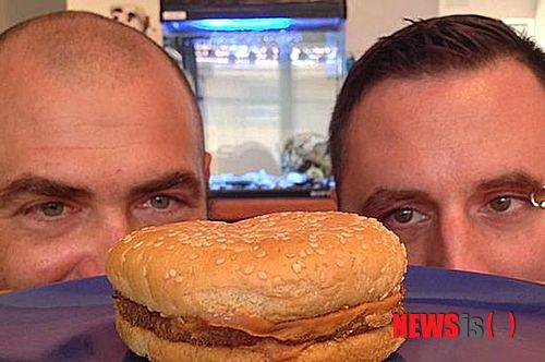 【서울=뉴시스】16일(현지시간) 미러지에 따르면 케이시 딘과 그의 단짝 에두아르트 니츠는 20년 된 맥도날드 쿼터파운더치즈 버거를 소유하고 있다며 이를 '세상에서 가장 오래 된 햄버거'라고 주장하고 있다. 지난 1995년 호주 애들레이드의 한 맥도날드 매장에서 햄버거를 샀고, 20년이 지난 지금까지 보관하고 있었다. 20년 된 햄버거 세트의 포장용지와 내용물은 당시 그대로의 모습을 유지하고 있는 것으로 전해졌다. (사진= 미러)