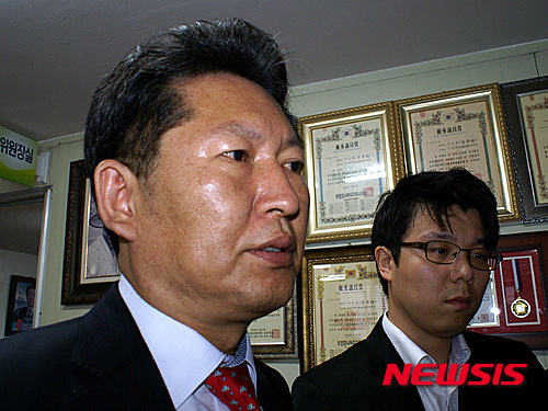 【여수=뉴시스】김석훈 기자 = 11일 새정치민주연합 주승용 최고위원을 만나기 위해 주 의원 지역구 사무실이 위치한 전남 여수시 선소로 여수 을 지역위원회를 방문한 정청래 최고위원이 주 의원을 만나지 못하고 한시간여 만에 돌아가고 있다.