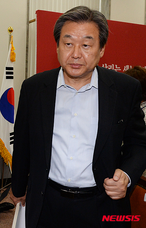 【서울=뉴시스】조수정 기자 = 김무성 새누리당 대표가 7일 오전 서울 여의도 국회에서 열린 긴급 최고위원회의 후 브리핑을 마친 뒤 회의장을 나서고 있다. 김무성 대표는 브리핑을 통해 유승민 원내대표의 거취에 대해 "내일 의원총회에서 사퇴 권고 결의안을 채택하겠다"이라고 밝혔다. 2015.07.07.