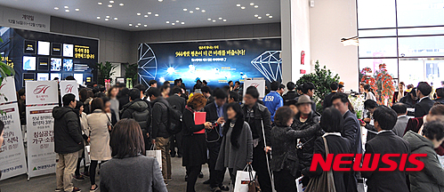 【서울=뉴시스】11일 경기도 안양시 관양동 1588-14에 위치한 힐스테이트 에코 평촌 견본주택을 찾은 방문객들이 내부를 둘러보고 있다. 2015.12.11. (사진=현대엔지니어링 제공)
