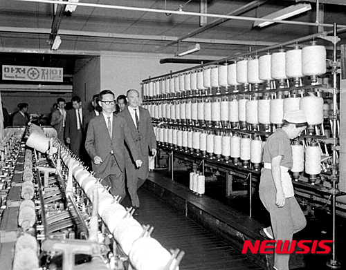 이번에 제공되는 기록물은 총 27건(동영상 8건, 사진 15건, 문서 4건)으로, 한-미 대통령의 연구소 설립지원 공동성명, 연구소 준공, 해외 한인과학자 유치 등 KIST 설립과정과 주요 활동을 보여준다. 사진은 1965년 호닉 미 대통령 경제담당고문이 제일모직을 시찰하는 모습. 2016.02.03. (사진=국가기록원 제공)