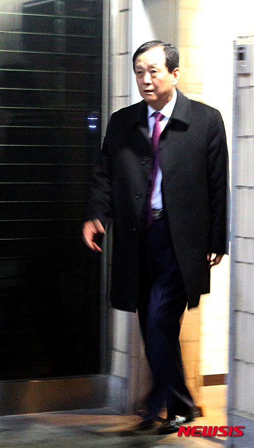【수원=뉴시스】김도란 기자 = 뇌물수수 등의 혐의를 받고 있는 이교범 경기 하남시장에 대한 사전구속영장이 기각됐다. 18일 영장이 기각되자 검찰청사에서 대기하고 있던 이 시장이 밖으로 나오고 있다. 2016.02.18