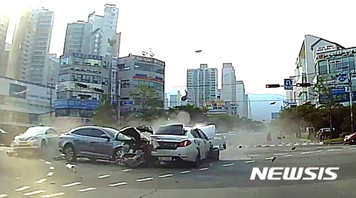 【부산=뉴시스】하경민 기자 = 부산 해운대경찰서는 1일 신호를 무시하고 질주해 횡단보로 보행자를 덮치고 교차로를 지나던 차량 6대를 들이받은 사고를 낸 푸조 차량 운전자 김모(52)씨에 대해 교통사고처리 특례법 위반 혐의로 사전구속영장을 신청할 예정이다고 밝혔다.