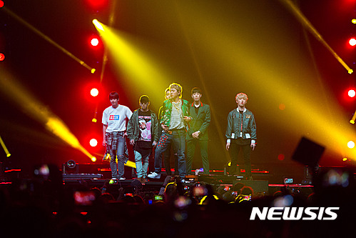 【서울=뉴시스】지난달 30일(현지시각) 미국 LA 스테이플스센터에서 열린 KCON 2016 LA에서 그룹 블락비가 공연을 하고 있다. 2016.08.01. (사진=CJ E&M 제공)