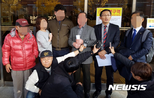 광주고법 제1형사부(부장판사 노경필)는 17일 살인과 도로교통법 위반(무면허) 혐의로 기소돼 징역 10년을 받았던 최모(32)씨의 재심에서 살인죄에 대해 무죄를 선고했다. 이날 오전 최씨의 변호인단이 무죄 선고 뒤 법원 앞에서 기자회견을 하고 있다. 2016.11.17.