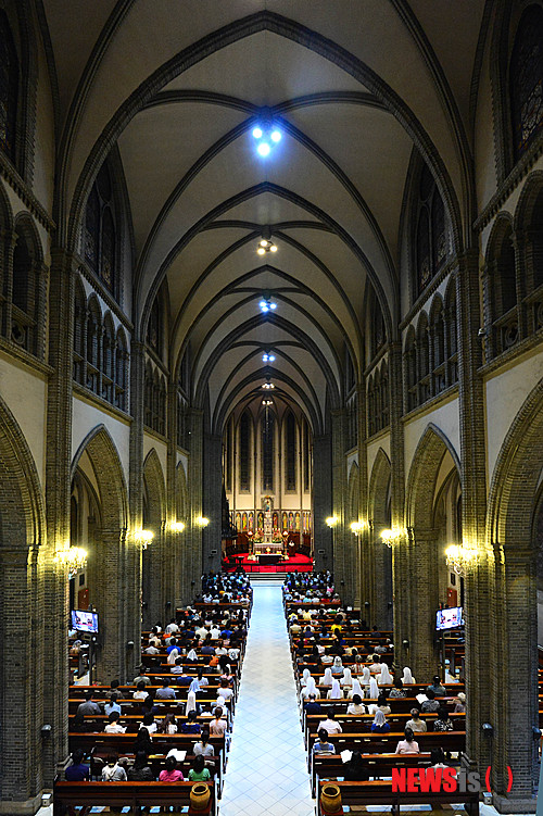 【서울=뉴시스】박문호 기자 = 가톨릭교회가 '그리스도의 성체 성혈 대축일'로 기리는 2일 오후 서울 중구 명동성당에서 '교황과 함께하는 장엄 성체 조배'가 열리고 있다.