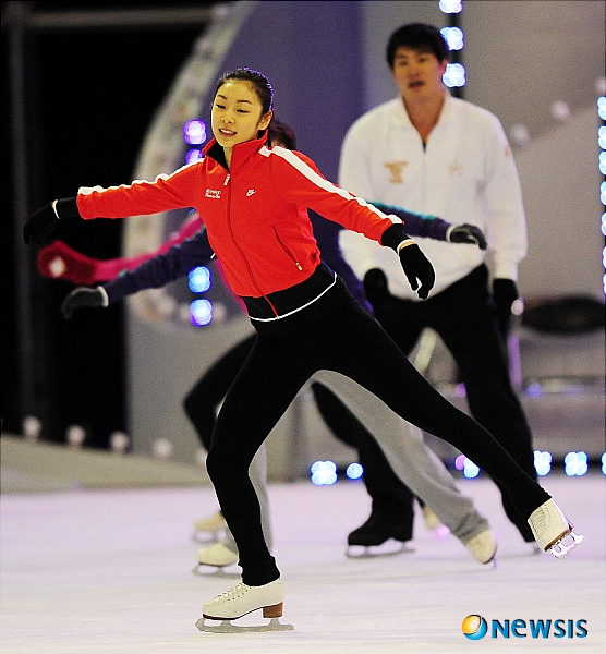 【서울=뉴시스】허상욱 기자 = 15일 오후 올림픽공원 체조경기장에서 열린 KCC 스위첸 페스타 온 아이스 2010 미디어 공개 리허설에서 김연아가 멋진 연기를 선보이고 있다.