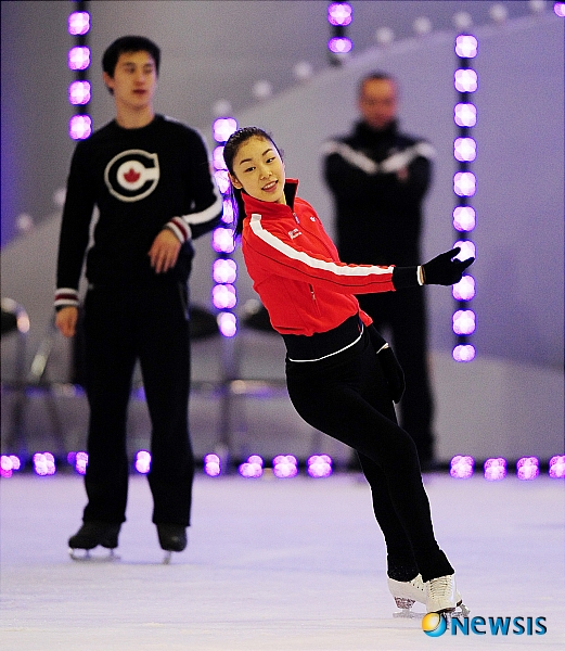 【서울=뉴시스】허상욱 기자 = 15일 오후 올림픽공원 체조경기장에서 열린 KCC 스위첸 페스타 온 아이스 2010 미디어 공개 리허설에서 김연아가 멋진 연기를 선보이고 있다.