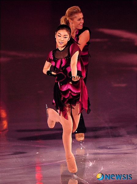 【서울=뉴시스】허상욱 기자 = 16일 오후 올림픽공원 체조경기장에서 열린 KCC 스위첸 페스타 온 아이스 2010에서 김연아가 소녀시대의 '런 데빌 런' 에 맞춰 멋진 연기를 선보이고 있다.