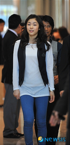 【서울=뉴시스】전진환 기자 = 24일 오후 김연아와 함께하는 독자와의 만남 행사가 열린 서울 영등포구 타임스퀘어에서 김연아가 사인회장으로 들어오고 있다.