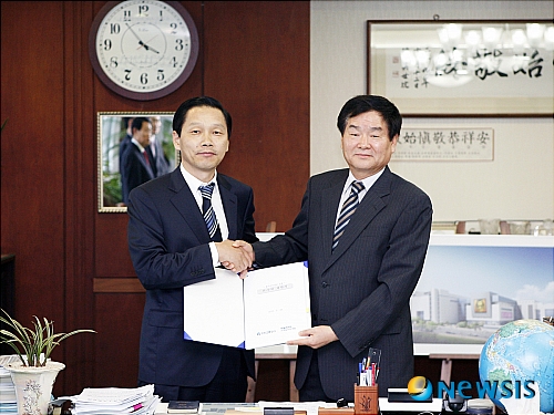 【대전=뉴시스】박희송 기자 = 코레일관광개발(대표이사 길기연·왼쪽)은 24일 오후 4시 인천교통공사 본사에서 인천교통공사(대표이사 안현회)와 '월미은하레일 위탁 계약'을 하고, 5년간 위탁 운영하게 됐다고 25일 밝혔다. (사진=코레일관광개발 제공)