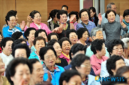 【서울=뉴시스】박세연 기자 = 1일 오후 서울 중랑구 시립중랑노인종합복지관에서 열린 '2010 노인의 날 기념 아름다운 어르신 축제'에서 어르신들이 가락장구 동아리 어르신들이 장구 연주에 어깨춤을 추고 있다.