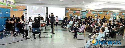 【대전=뉴시스】박재용 기자 = 을지대학병원(원장 황인택)은 23일 병원 1층 로비에서 실내악단 '스트링디아츠(String The Arts)'를 초청, 환자를 위한 을지음악회를 개최했다.